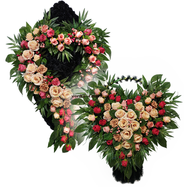 Дуэт состоит из венка П734 и корзины К513- выполненными в одной цветовой гамме и на идентичных цветах